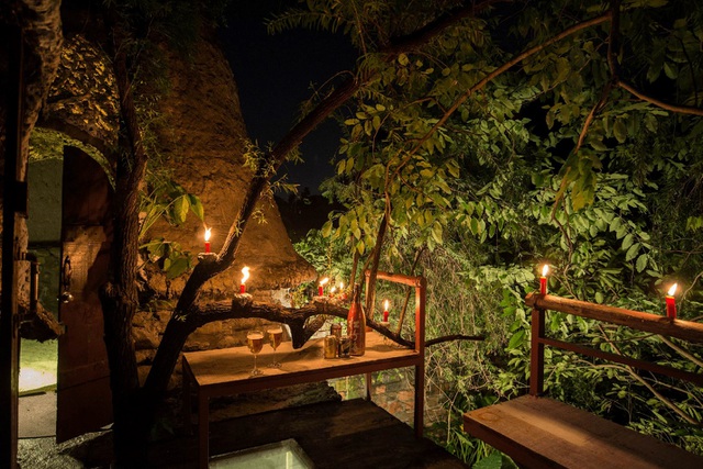 Khung cảnh ban đêm lãng mạn như được trải nghiệp một chuyến cắm trại ngoài trời.