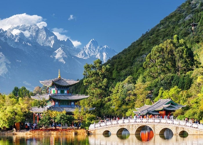 Lệ Giang thuộc tỉnh Vân Nam, được mệnh danh là “Venice của phương Đông”, là cảnh đẹp chốn hồng trần khiến bao trái tim lữ khách rung động. Đây là trấn cổ nổi tiếng nhất Trung Quốc với tuổi đời hơn 800 năm, nằm trên cao nguyên Vân Quý với độ cao 2.400m so với mực nước biển. Nhắc đến Lệ Giang không ai không biết đến Đại Nghiên Thành, công viên Hắc Long Đàm nằm dưới chân núi Ngọc Long. Đứng từ đây, bạn có thể chọn nhiều góc đẹp để chụp ngọn núi tuyết trắng. Hình ảnh núi phản chiếu xuống mặt hồ, cùng cầu Ngũ Khổng, lầu Đắc Nguyệt đã trở thành hình ảnh kinh điển của Lệ Giang, được in trên bưu thiếp.