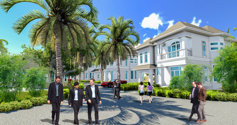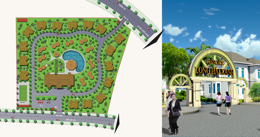 KDL được bố trí thành hai khu chức năng là Khu resort và khu biệt thự nghỉ dưỡng. Không gian kiến trúc bên trong được bố trí thông thoáng nhiều mảng xanh để tận hưởng không khí trong lành vùng biển. Toàn bộ các hạng mục được bố trí hướng tâm và có khoảng cách cân đối từ mặt bằng đến chiều cao tổng thể từ đó tạo nên cảm giác gần gũi với thiên nhiên.