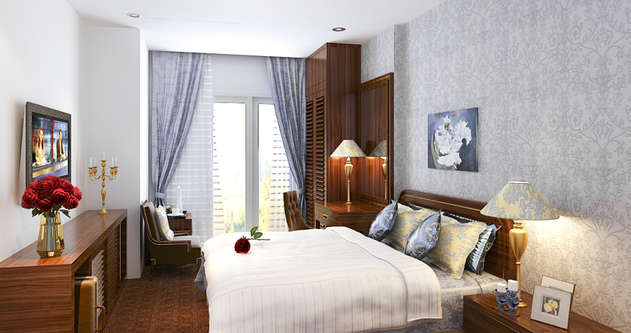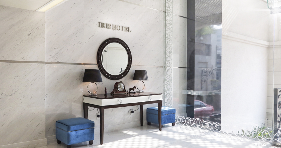 Tòa nhà xuất hiện như một cô gái duyên dáng theo phong cách Trung Đông khoác trên mình một tấm áo choàng trắng điểm những bông hoa Iris. Khách sạn này có qui mô hơn 30 phòng từ Superior, Delux 2 sao, sảnh, hầm Business center, Cafe bar, Landscape phía trước.