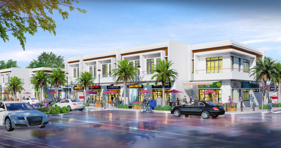 Hạ tầng xã hội: Thương mại dịch vụ, trường học, y tế, công viên cây xanh
