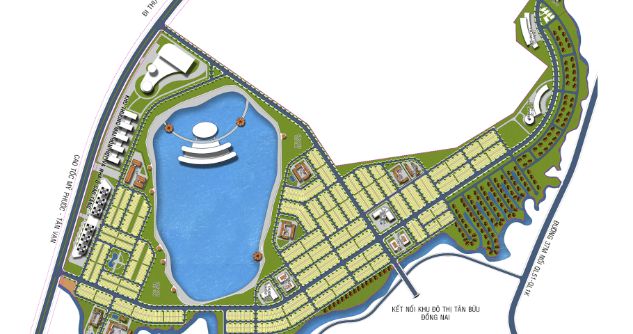 - Đất giao thông nội bộ: 39,49ha tỉ lệ 21,29%